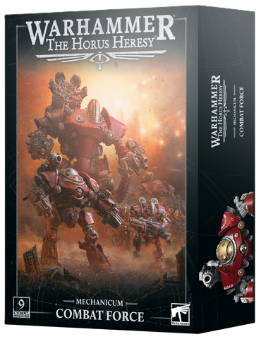 The Mechanicum Combat Force leans into cybernetic troops with a unit of six highly mobile Thallax Cohort miniatures, equipped with lightning guns and with the choice of giving two either phased plasma-fusils, photon thrusters, or multi-meltas. This impressive complement of firepower is supported by a pair of Castellax Battle-automata who can be equipped with shock chargers or power blades and a choice of shoulder-mounted weapon, with two mauler bolt cannons, one darkfire cannon, and one multi-melta included, plus a towering Thanatar Cavas Siege-automata – a walking artillery piece packing an immense Hellex-pattern plasma mortar.