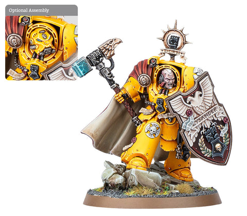 As Captain of the Imperial Fists’ First Company, Darnath Lysander is a bulwark of unflinching resolve. He leads legendary Terminator assaults, wading into enemy lines with the storm shield Rampart held high as he swings the Fist of Dorn. This kit contains two head options: a bare face and a Terminator helmet.